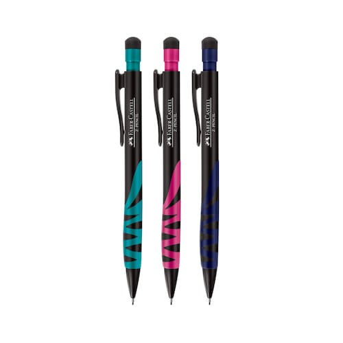 As lapiseiras Z-Pencil possui uma escrita confortável e macia, com grip emborrachado, criada com um design para não escorregar na mão, possuindo também borracha com tampa protetora.