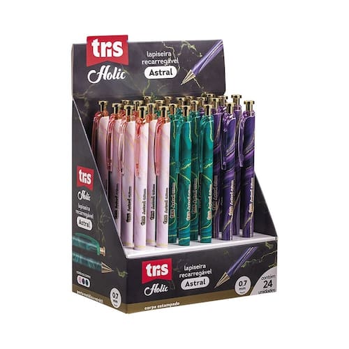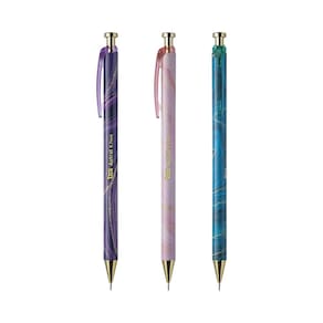 A lapiseira Astral tem estampa marmorizada e detalhes com acabamento gold.