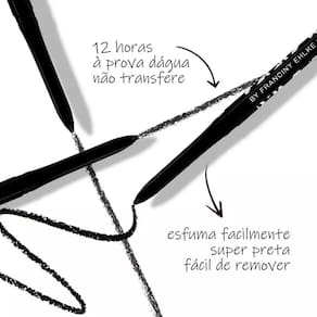 A Lapiseira Retrátil Franciny Ehlke Pullpencil foi especialmente desenvolvida para proporcionar uma aplicação uniforme, é super fácil de esfumar, e os polímeros ultra macios garantem a consistência perfeita na aplicação e durabilidade. Além disso, e a prova d'água, de suor e transferência, atesta 12 horas de duração, super macio, de alta pigmentação, super preto e não borra.