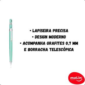 A Lapiseira Técnica NP-X Japan 0,7 mm da Molin combina precisão, modernidade e conforto na escrita. Desenvolvida para e artístico, oferece traço firme e macio, ideal para arquitetos, designers, estudantes e ilustradores. Possui design contemporâneo, disponível em diversas cores, incluindo opções em tons pastel e vibrantes, que unem estilo e praticidade no dia a dia. O produto acompanha grafites 0,7 mm e uma borracha telescópica embutida, garantindo maior funcionalidade e conveniência. Além disso, é fabricada com materiais de alta qualidade, não tóxicos, proporcionando durabilidade e segurança no uso. Trata-se de uma escolha versátil e elegante para quem busca uma lapiseira confiável, seja para atividades técnicas, estudos ou expressões artísticas. Marca: Não Informado