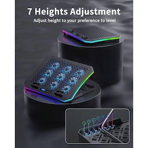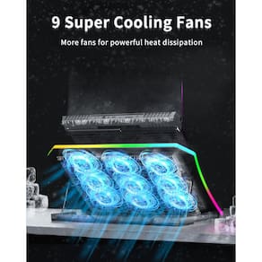 Almofada de resfriamento para laptop atualizada KeiBN, almofada de resfriamento para laptop para jogos com 9 ventiladores silenciosos, refrigerador de laptop RGB de 15,6 a 17,3 polegadas, almofada de resfriamento para laptop com 7 suportes de altura, 2 portas USB