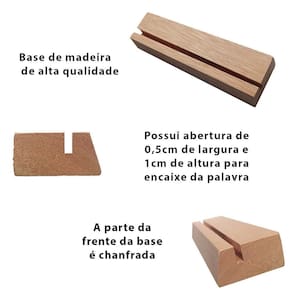 Palavra fabricado em MDF de 3mm com revestimento na cor preta fosca e base fabricada com madeira.