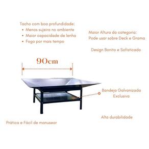 Lareira 100cm para jardim fogueira externa portatil a lenha A lazer e você apresenta a lareira para jardim portátil quadratta 100cm e 43cm altura mais alta da categoria . Fabricada em chapa grossa de aço carbono 1020. Pode ser Utilizado sobre piso cerâmico, deck de madeira e grama Base com pintura especial para altas temperaturas Bandeja galvanizada exclusiva de proteção para o piso e para pré assar alimento. Tacho com ótima profundidade na cor bruta do metal. Solda especial tig de alta resistência e acabamento - fio a fio Tacho seguro com cantos arredondados Prática, e com excelente durabilidade. Utiliza-se lenha, carvão, briquete ecológico e etc. Imagine um produto capaz de tornar as noites frias mágicas, de criar um clima sofisticado, alegre e aconchegante na presença da familiares e amigos. Use-a para encantar as crianças, bater um papo com os amigos, tocar um violão ao redor da fogueira, tomar um bom vinho, assar marshmallows, festa junina e o que imaginar. Ideal para fazer uma fogueira controlada, sem sujeira para aquecer o ambiente e alegrar os corações. observações: - lareira somente para ambientes externos como jardins, quintal ao ar livre, chácaras, pousadas, hotel fazenda, clubes, parques, etc. - quem mora em apartamento com sacada pode usar no espaço externo com carvão que não faz fumaça - devido ser fabricado em ferro, evitar o contato com água para maior durabilidade - não acompanha lenha. - cuidado e atenção total com crianças - manusear a lareira somente com luvas térmicas - a base aquece com o calor da fogueira - com o fogo a tonalidade de cor do tacho irá alterar O que acompanha: 01 tacho com chapa grossa de 2.0mm de espessura 01 base montável - pintura especial altas temperaturas 01 bandeja galvanizada exclusiva Medidas da lareira montada: Largura: 100cm Comprimento: 100cm Altura total: 43cm Peso: 21,5 kg Cor base: preto fosco Tacho: na cor bruta do metal Marca: Não Informado