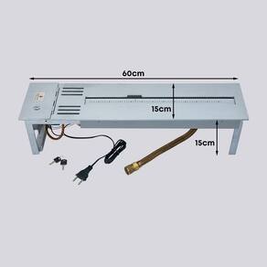 • Tamanho: 60 cm (c) x 15 cm (a) x 15 cm (l); • Queimador linear: 37 cm | 1 linha de fogo; • Área de aquecimento: 20 m² - Considerando pé direito de até 2.80m; • Consumo de gás: 350 g/h; • Peso: 7,5 kg; • Acabamento: cinza fosco | tinta especial para altas temperaturas; • Material: aço carbono; • Acendimento: manual com faísca elétrica (igual a um forno a gás); • Dispositivo de Segurança: Termopar – Sistema que corta o gás na ausência do fogo, semelhante a um forno a gás; • Voltagem: bivolt • Ambiente para uso: interno - protegido do sol e intempéries • Regulagem de chama: 5 níveis de altura • Pedras vulcânicas inclusas para decoração • Instalação: Uso embutido (semelhante a um cooktop); • Chaminé: Recomendado somente quando o tamanho da lareira não estiver de acordo com tamanho do ambiente. Sempre é necessário ter uma janela no mesmo ambiente para deixar um fresta aberta para renovação do ar; o de lei ou dormente. A chama da lareira é real. Acima da lareira deve ter uma área livre de no mínimo 60cm de altura para ventilação;