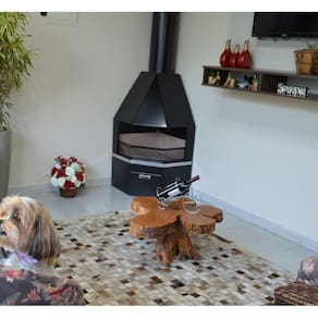 Lareira de Canto Grande com Caixa de Lenha e Kit de Instalação