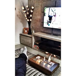 Lareira ecológica portátil em madeira Escurecida, com queimador de 50cm. Destinado ao aquecimento e decoração de ambientes internos. Produzido em aço inoxidável 304 anti ferrugem de alta qualidade Abertura de saída da chama: 40 cm Abastecimento: Álcool Comum 92,8 Etanol Usar no máximo 1 litro em cada carga Tempo de queima é de 2h a 2h30min com 1 litro de álcool Área de abrangência: Aproximadamente 25 m2 Dimensões: Comprimento 60 cm / Largura 35 cm / Altura 14 cm sem vidros Vidros 56 x 17cm. Produto seguro pois tem uma Manta Térmica Cerâmica que absorve o álcool, não deixando o líquido exposto, eliminando o risco de derramar o liquido do queimador. de 1 ano contra defeitos de fabricação Observações importantes: Utilizar álcool 92º etanol como combustível. Não utilizar álcool em gel de mercado, sob o risco de danificar o produto. O álcool 46º não pega fogo. Necessário um vão livre entre 50 e 60cm acima do queimador, permitindo que o calor se expanda. Caso exista um móvel acima do queimador, é necessário uma proteção com tijolos refratários, manta térmica ou isolante térmico eficaz acima do fogo, evitando danos ao móvel. Necessária a utilização dos vidros laterais, evitando que o fluxo de ar direcione a chama para apenas um dos lados do queimador podendo ocasionar sobrecarga e deformação do inox . Embalagem: 62cm x 14cm x 37cm Peso: 14kg A embalagem contém: - 1 caixa de lareira - 2 vidros - 1 Queimador - 1 tampa abafadora - 1 Cano difusor - 1 Funil - 4 rodinhas com parafusos - Manual Marca: Não Informado