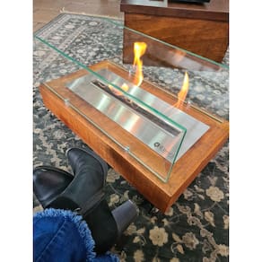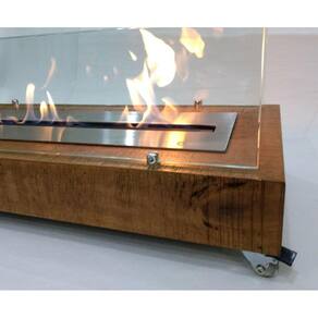 Lareira ecológica portátil em madeira Rústica, com queimador de 50cm. Destinado ao aquecimento e decoração de ambientes internos.Produzido em aço inoxidável 304 anti ferrugem de alta qualidadeAbertura de saída da chama: 40 cmAbastecimento: Álcool Comum 92,8 ou EtanolUsar no máximo 1 litro em cada cargaTempo de queima é de 2h a 2h30min com 1lt álcoolÁrea de abrangência: Aproximadamente 25 m2 Dimensões: Comprimento 60 cm / Largura 35 cm / Altura 14 cm sem vidros Vidros 56 x 17cm. Observações importantes:Utilizar álcool 92º etanol como combustível.Não utilizar álcool em gel de mercado, sob o risco de danificar o produto. O álcool 46º não pega fogo.Necessário um vão livre entre 50 e 60cm acima do queimador, permitindo que o calor se expanda.Caso exista um móvel acima do queimador, é necessário uma proteção com tijolos refratários, manta térmica ou isolante térmico eficaz acima do fogo, evitando danos ao móvel.Necessária a utilização dos vidros laterais, evitando que o fluxo de ar direcione a chama para apenas um dos lados do queimador podendo ocasionar sobrecarga e deformação do inox .Produto seguro pois tem uma Manta Térmica Cerâmica que absorve o álcool, não deixando o líquido exposto, eliminando o risco de derramar o liquido do queimador.Garantia de 1 ano contra defeitos de fabricaçãoEmbalagem: 62cm x 14cm x 37cm Peso: 14kgA embalagem contém: - 1 caixa de lareira- 2 vidros- 1 Queimador - 1 tampa abafadora- 1 Cano difusor - 1 Funil- 4 rodinhas com parafusos - Manual