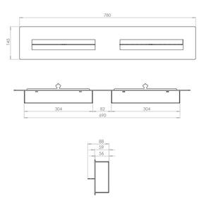 O tempo de queima desta lareira de embutir ecológica é de 2 a 3 horas. Sua capacidade é de 2 litros de álcool e a capacidade de aquecimento é de ambientes de até 50m.