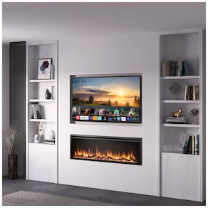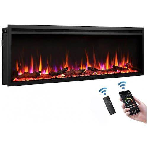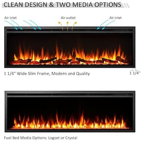 INSTALAÇÃO Tanto na parede recuada quanto na parede estão disponíveis para você escolher. Seria necessário um circuito de 120V e 15AMP. DUAS conexões elétricas plug in ou fiação rígida. COMBINAÇÕES DE CHAMA MULTI A chama moderna e realista cria uma sensação de chama semelhante à vida Duas opções para o leito de combustível conjunto de toras ou pedras de cristal. Chama multicolorida e leito de combustível em 5 configurações de brilho, sons crepitantes para se adequar aos seus diferentes humores, alegres ou pacíficos em diferentes ocasiões. Chama e efeito crepitante podem ser s com ou sem calor. AQUECEDOR Soprador de aquecedor frontal superior saída de calor na parte superior do meio e entradas de ar ao lado da saída . Duas configurações de calor alta de 1500W e baixa de 750W emitem calor razoável, mas NÃO PODEM ser usadas como principal fonte de calor. O termostato e o cronômetro de contagem regressiva estão disponíveis para uso conveniente e desejado. CASA MODERNA DÉCOR O design de aparência simples e elegante é perfeito para sala de estar, centro de entretenimento, escritório ou qualquer outro lugar que você queira. Os botões da tela de toque são desligados após alguns segundos sem nenhuma operação e o interruptor principal invisível quando o uso aperfeiçoa sua sensação. SOMENTE para uso interno