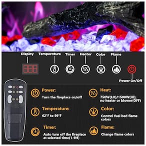 Operação Simples: Projetada com tela sensível ao toque e controle remoto, incluindo: ligar/desligar, configuração de timer de 1-9 horas, ajuste de temperatura, configuração de calor, ajuste de cor da chama e da base. Todas as funções têm botões individuais, facilitando o uso. Um display mostra a função escolhida, permitindo alcançar as configurações desejadas rapidamente e convenientemente.