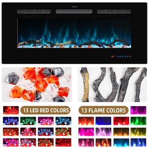 13×13 Cores de Chama e Base: A lareira elétrica possui de chama e base de LED que podem ser ajustadas para combinar com diferentes ambientes e atmosferas. Acompanha lenha e cristais para personalização, coordenando com a chama realista para criar uma experiência mais intuitiva.