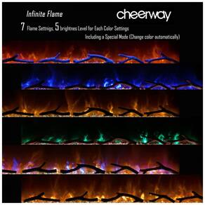 CHAMA INFINITA: 6 cores de chama × 14 cores de leito de carvão × 13 cores de luz de destaque × 5 níveis de brilho da chama, todas disponíveis para o inserto de lareira. Todas as configurações podem ser controladas separadamente. Luzes LED de alta intensidade fazem a chama tão brilhante durante o dia quanto à noite, com uma chama bem ajustada que salta como um fogo real.