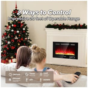 Chama realista A lareira inclui cristais e toras de fogo falso para criar uma sensação autêntica, bem como um controle remoto IR para controlar a cor e a intensidade da chama, o aquecedor e o temporizador de desligamento
