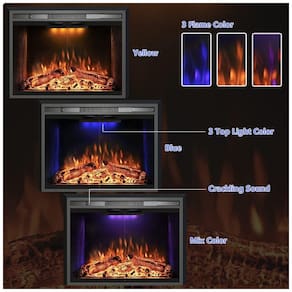 Modos de Aquecimento e Experiência Realista: A lareira oferece três modos de aquecimento ajustáveis: 750 W, 1500 W e desligado, permitindo escolher a configuração ideal para conforto e economia de energia. O aquecedor frontal é eficaz para ambientes de até 37 m². O modo de espera desliga todas as luzes mantendo o aquecimento, proporcionando um ambiente mais relaxante. A lareira possui chamas dançantes, som crepitante e leito de combustível cintilante, com 3 opções de volume de som crepitante para simular a queima de toras, criando uma experiência realista. Oferece 3 cores de chama ajustáveis—amarelo, azul e uma mistura de amarelo e azul—para criar diferentes atmosferas. Também pode ser usada apenas como decoração sem aquecimento, adequada para todas as estações.