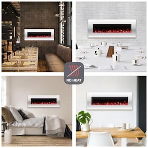 Lareira Elétrica Sem Calor: Esta lareira elétrica sem aquecimento inclui efeitos de chama seguros para desfrutar da ambientação durante todo o ano, com estilo adicional de fundos personalizáveis, brilho e chamas LED que mudam de cor.