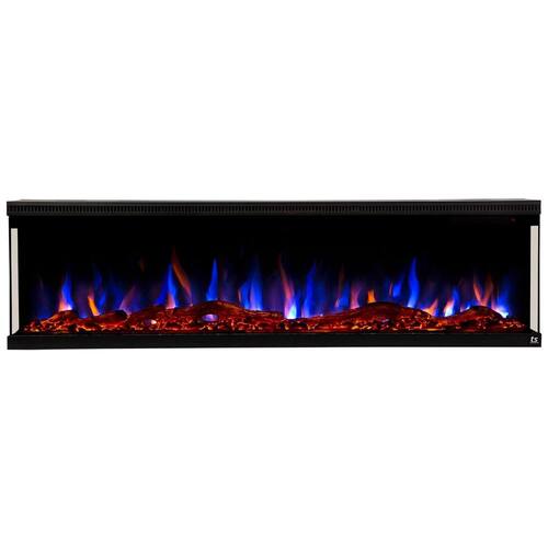 Design Sofisticado de 3 Lados: Com vidro transparente na frente e nas laterais, esta lareira de 72 polegadas oferece uma visão panorâmica das chamas, criando um ambiente elegante e acolhedor.