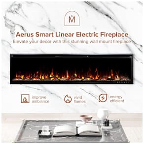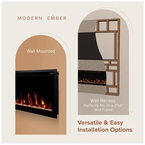 A Lareira Elétrica Linear Aerus Slim pode ser instalada de duas formas diretamente na parede ou embutida em uma parede com moldura de 2x4 para uma aparência nivelada. O controle remoto incluído permite ajustar facilmente as configurações de calor, cor da chama e ligar desligar o dispositivo. Além disso, é possível conectar se ao WiFi com seu assistente doméstico favorito para ajustar as configurações com sua voz ou aplicativo de dispositivo móvel. É possível definir a temperatura ambiente desejada ou desligar completamente o aquecimento durante o verão. As chamas funcionam com ou sem aquecimento para que você possa controlar o ambiente na sala. A lareira inclui efeitos sonoros de crepitação integrados e brasas de cristal de madeira de floresta. Com chamas de LED ajustáveis em 5 cores vibrantes, 5 níveis de brilho, 3 velocidades de chama e 10 tons de leito de brasas, você pode controlar sua lareira para se adequar ao seu estilo e necessidades. Existem 6 opções de fiação disponíveis, incluindo a conexão em uma tomada de 110 V com o cabo de 1,82 metros com o kit de plugue incluído ou a conexão com fio para instalações profissionais na parede. É importante ter cuidado com a instalação de fiação.