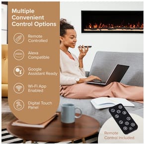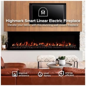 A deslumbrante Lareira Elétrica Linear Highmark da Modern Ember pode ser montada diretamente na parede ou embutida nela para um visual contínuo e elegante. Acompanha controle remoto que funciona com a Alexa, permitindo ajustar facilmente as configurações de calor, cor da chama, ligar/desligar o aparelho e mais. Conecte-se ao WiFi e ao assistente de casa favorito para ajustar as configurações por comando de voz. Controle a temperatura ambiente desejada (entre 20°C e 31°C) durante todo o ano ou desligue completamente o aquecimento no verão. As chamas podem ser ligadas com ou sem aquecimento, dando a você controle total da atmosfera do ambiente. Inclui troncos de madeira e cristais de brasas que combinam com 10 cores de chama, 5 opções de brilho, 3 velocidades de chama e 10 cores de cama de brasas, permitindo personalizar a aparência da lareira conforme seu estilo e necessidades. O design moderno e elegante da Highmark possui saídas de ar ocultas que criam uma moldura elegante, sem grades ou aberturas visíveis.