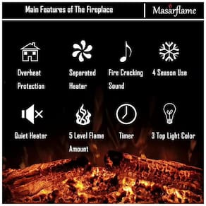 Modos Multi Chama Criado com LOGS DE RESINA LIFE LIKE EMBER BED com 3 cores de luz de atmosfera e 5 intensidades de chama variáveis Estilo retrô de parede de tijolo interior de três lados, ótimo substituto para lareira antiga existente. Ideal para casa, escritório ou qualquer tipo de ocasião. Duas opções de aquecimento com economia de energia 750W, 1500W Opção de aquecimento de 2 níveis para o aquecedor da lareira e pode ser operado sem calor para usos de 4 estações. Não requer gás e óleo, sem fumaça e sem cinzas, 100 de economia de energia. A saída de ar frontal na parte superior do aquecedor da lareira fornece aquecimento suplementar para uma sala de até 37 m2. Lareira moderna ocidental com alto falante chamas dançantes realistas e efeito de tora em chamas, alto falante embutido simulando o som de rachaduras de carvão, proporcionam uma experiência real de lareira. Dê ao seu quarto um ambiente de sonho As dimensões do produto em centímetros são 23 de profundidade x 83 de largura x 62 de altura