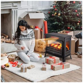 Design Clássico Independente: Com um design vintage e saída de calor eficiente de 1500W, 120V, você e seus convidados podem desfrutar do ambiente das chamas cintilantes de qualquer lugar da sala.