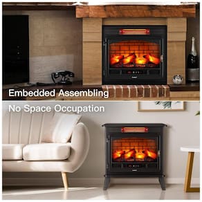 Seguro para Usar: Interruptor de corte de segurança contra superaquecimento e estrutura de metal durável e resistente ao fogo. A saída de ar na parte inferior do fogão evita eficazmente o superaquecimento e perigo de alta temperatura. O aquecedor de lareira interno é certificado pela ETL e FCC para uso seguro.