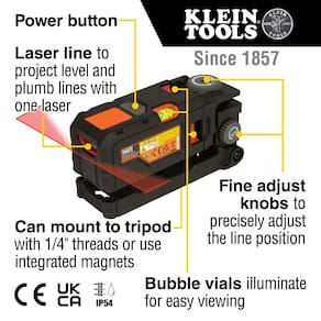 - Linha vermelha potente: projeta linha única de laser vermelho até 9,1 m em ambientes internos, oferecendo ampla cobertura para uma ampla variedade de aplicações