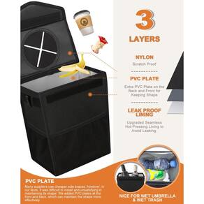 Pritent Lixeira de carro com tampa - Recipiente multiuso 3 em 1 com capacidade de 2 galões: uma virada de jogo para um carro limpo e organizado! Não é apenas um suporte de lixo e organizador de armazenamento de carro, mas uma boa bolsa térmica portátil para o seu carro. Os bolsos de malha oferecem locais de armazenamento convenientes para coisas como lenços, sacos de lixo extras e lenços de limpeza. Os bolsos de malha podem guardar qualquer coisa que você queira manter ao alcance do braço no seu carro. Por que não atualizar sua experiência de condução hoje e investir em uma lixeira Pritent para o seu carro - Placa extra de PVC para manter a forma: Atualmente, muitos fornecedores usam suportes laterais mais baratos para manter a forma da lata de lixo e economizar custos com o produto. No entanto, em nossos testes, não foi apenas difícil de instalar, mas também insatisfatório em manter sua forma. Após repetidos designs e testes, adicionamos placas de PVC na frente e atrás, que podem manter a forma da lixeira de forma mais eficaz e conveniente para uso sem instalação - Forro fácil de limpar e à prova de vazamento: forro de material PEVA com tecnologia de prensagem a quente sem costura atualizada para evitar vazamentos. O lixo seco, como guardanapos e recibos, é fácil de coletar, mas o lixo molhado, como pacotes de ketchup ou caixas de suco, tende a complicar seus esforços de higienização. Os vazamentos deixam as coisas molhadas, pegajosas e às vezes fedorentas, então encontrar uma lata de lixo à prova d'água é essencial para quem deixa líquidos entrarem no carro. Dicas, nossa lixeira é um bom armazenamento de guarda-chuva úmido para dias chuvosos - Design dobrável e 2 ganchos laterais: em comparação com fivelas magnéticas, 2 ganchos laterais podem proteger mais eficazmente vários tamanhos de sacos de lixo. Você pode colocar o cesto do seu carro no chão ou escolher um local para fixá-lo com uma alça para pendurar. O encosto de cabeça e o console central são perfeitos, seu botão de câmbio não conta - Capa prática de couro PU e forma trapezoidal exclusiva: uma lixeira sem tampa é como uma caixa de exibição de lixo, o que é embaraçoso quando há outros passageiros. Uma lata de lixo com tampa pode torná-la mais limpa e organizada. Pode evitar que o lixo vaze enquanto você está em movimento e ajuda a cobrir o desperdício e o cheiro desagradável dentro. Projetado com uma tampa de couro PU de vedação rápida, que pode colocar objetos apenas empurrando-os através da tampa, e ela desligará automaticamente