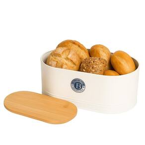 Lata Redonda Porta Pão Com Tampa De Bambu - Creme