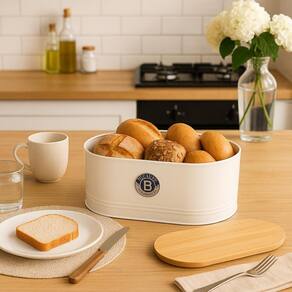 Descrição do Produto Mantenha seus pães, bolos e biscoitos sempre frescos com muito mais charme. A Lata Redonda Porta Pão com Tampa de Bambu combina resistência e design sofisticado, trazendo um toque natural e moderno para a sua cozinha. Além de conservar melhor os alimentos, é uma peça decorativa que valoriza o ambiente. Benefícios e Características Conservação prolongada: tampa de bambu com vedação que ajuda a preservar a maciez dos pães. Design moderno: formato arredondado e acabamento clean que se adapta a qualquer estilo de cozinha. Sustentabilidade: tampa em bambu natural, resistente e ecológica. Organização prática: substitui embalagens e mantém a bancada mais clean. Versatilidade: ideal para pães, bolos, biscoitos e até snacks do dia a dia. Ficha Técnica Material: Corpo em metal pintado + tampa em bambu natural Cor: Creme com detalhe em aço cromado Dimensões aproximadas: 32 cm largura x 18 cm altura x 16 cm profundidade Capacidade: comporta pães de forma, baguetes pequenas ou bolos médios Tampa: removível e lisa, podendo ser Utilizado também como tábua de apoio Instruções de Limpeza Corpo: limpar com pano úmido e detergente neutro Tampa: higienizar com pano levemente úmido e secar imediatamente