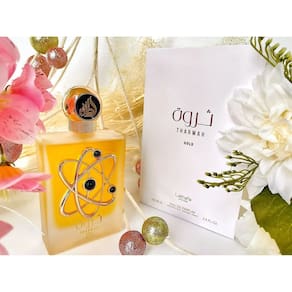 Uma fragrância com doçura duradoura. Você já acordou se sentindo tão cheio de vida? Esta fragrância é como aquele momento espirituoso. Tharwah Gold é uma fragrância cristalizada com toques sutis de aromas florais herdados do jasmim, lavanda e flor de laranjeira. O começo é principalmente doce, seguido por um doce floral e uma secagem de doçura quente.