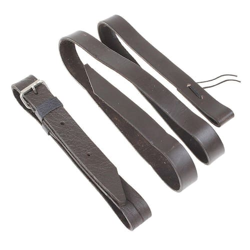 Conjunto Látego e Contra látego Bronc-Steel fabricado em couro na cor Marrom, possui fivela de metal para regulagem. Látego com 2,5cm de largura e contra látego com 3cm de largura.