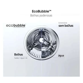 Ecobubble?: eficiência de lavagem e cuidado com as roupas: A tecnologia exclusiva Ecobubble? produz bolhas de sabão que tornam a lavagem muito mais cuidadosa e poderosa. Ela facilita em 40x a do sabão no tecido e promove uma lavagem mais eficaz mesmo com água fria e com mais economia de energia.