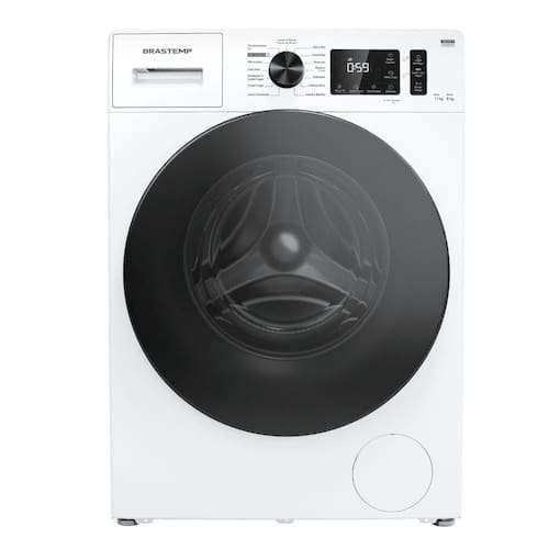Lava e Seca Brastemp Branca 11Kg\\ 6Kg, BNO11AB - 220 Volts, 15 programas de lavagem, Smart Sensor by AI, 1h pronto para vestir, Água quente, Adiar início, Ciclo silencioso, Ciclo rápido, Trava de segurança, 6 ciclos de secagem, Lava com vapor, Tira mancha pro, Volto logo com vapor, Vaporizar, Ciclo edredom, lava edredom, Painel Digital (Tact), Porta: Moldura preta com acabamento frontal, Classificação energética (lavagem): A, Consumo aproximado de energia (kWh): 110V: 0,27 | 220V: 0,28Centrifugação