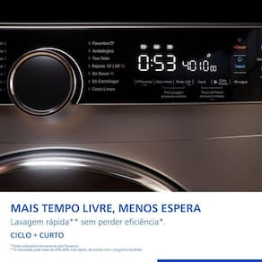 O ciclo mais curto otimiza seu tempo, agilizando a lavagem do dia a dia sem perder em desempenho e eficiência