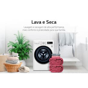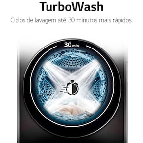 - Mais capacidade: Espaço suficiente para lavar itens maiores e volumosos - AI DD™: Inteligência Artificial que protege 18% mais as roupas durante a lavagem - STEAM™: Vapor que elimina 99,9% das bactérias - Rápido 14: lava uma carga de roupas de até 2kg levemente sujas ou entrega roupas limpas e secas em apenas 44 minutos - TurboWash™: Ciclos de lavagem 30 minutos mais rápidos com a ação de 2 jatos de água que atingem com profundidade as roupas - LG ThinQ®: Conexão Wi-fi, e comando de voz pelo Google Assistente, com o aplicativo LG ThinQ®Centrifugação