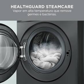 Design slim, conectividade Wi-Fi, tecnologia HealthGuard (Steam Care, Auto Clean, Esterilizar, Limpeza do Tambor), Função Turbo, Tecnologia Inverter, Função Desodorizar, Painel Touch em LED, Função Super Eco.Centrifugação
