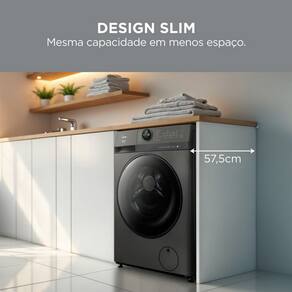 DESIGN SLIM Profundidade reduzida que otimiza espaço sem comprometer a capacidade e a eficiência da lavagem.