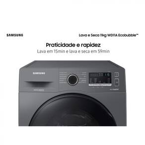 Lava e Seca Samsung 11kg Eco Bubble Inox com tecnologia Digital Inverter, Air Wash, e programas de lavagem a vapor.Centrifugação