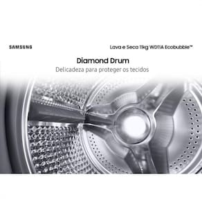 A tecnologia exclusiva Ecobubble produz bolhas de sabao que tornam a lavagem muito mais cuidadosa e poderosa. Ela facilita em 40x a penetracao do sabao no tecido e promove uma lavagem mais eficaz mesmo com agua fria e com mais economia de energia. Mais economia de energia e muito menos barulho ao lavar suas roupas, alem dos 20 anos de garantia no motor com a tecnologia Digital Inverter da Samsung.