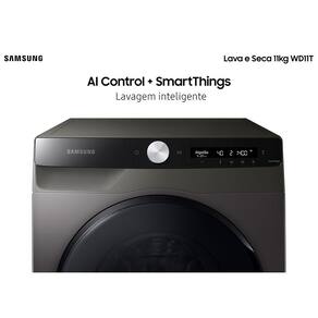 Principais características: Lava e seca suas roupas com maior eficiência, cuidando dos tecidos e economizando água e energia. -Lavagem inteligente - AI Control + SmartThings A lavagem de roupas acaba de ficar mais inteligente. Com um painel de controle intuitivo, essa máquina de lavar inteligente e conectada identifica os hábitos de lavagem da sua família e recomenda os seus ciclos favoritos. Ela ainda exibe durante a lavagem as informações mais importantes. Quer tornar o processo ainda mais simples? Com o app SmartThings você pode programar o horário da sua lavagem, obter dicas e recomendações do ciclo ideal, e até mesmo receber ajuda para conservar sua máquina. -Lava, seca e esteriliza a seco - 3 em 1 Roupas sempre bem cuidadas com a lavadora que lava, seca e esteriliza a seco. Com o ciclo de lavagem a seco AirWash, você elimina odores indesejáveis e até 99,9% das bactérias e alérgenos que causam problemas respiratórios, sem usar água ou sabão. Ideal para proteger sua saúde e a da sua família. -Bolhas poderosas - Ecobubble™ A tecnologia exclusiva Ecobubble™ produz bolhas de sabão que tornam a lavagem muito mais cuidadosa e poderosa. Ela facilita em 40x a penetração do sabão no tecido e promove uma lavagem mais eficaz mesmo com água fria e com mais economia de energia. -Eficiência energética, mais silenciosa e 10 anos de garantia no motor - Digital Inverter Mais economia de energia e muito menos barulho ao lavar suas roupas, além dos 10 anos de garantia no motor com a tecnologia Digital Inverter da Samsung. -Limpeza profunda com vapor eliminando 99,9% de bactérias - Vapor de higiene Higienize suas roupas com o poderoso ciclo de vapor que libera ar quente, removendo sujeiras profundas e 99,9% das bactérias e alérgenos inativos. -Sua máquina sempre limpa - Lavagem do Tambor Mantenha sua máquina limpa de maneira ecológica. A Lavagem do Tambor remove 99,9% das bactérias causadoras de odor do tambor sem usar produtos químicos e ainda ajuda na manutenção do seu produto. E você ainda recebe uma notificação de quando a sua máquina precisa ser limpa. -Praticidade e rapidez - Lavagem rápida em 15 minutos A WD11T lava e centrifuga as roupas em 15 minutos no ciclo rápido destinado a pequenas cargas, com sujeira leve. -Delicadeza para proteger os tecidos - Diamond Drum O design do tambor da lava e seca Samsung é delicado com as suas roupas. Os pequenos relevos em formato de diamante do tambor também ajudam a proteger os tecidos, reduzindo o atrito e prevenindo que suas roupas desfiem durante a lavagem. -Lavagem intensiva para as manchas mais difíceis - Função Manchas Difíceis A função Manchas Difíceis ajuda a remover uma grande variedade das manchas mais difíceis. Ao selecionar essa função, as peças de roupas são colocadas completamente de molho em água com bolhas para uma lavagem mais eficaz. -Remove os resíduos - Dispenser sempre limpo O dispenser projetado com um sistema de passagem de água facilita a saída do sabão, mantendo-o limpo e evitando desperdício de insumos. Outras especificações: -Sensor de Carga; -Entrada de água: 1 Via; -Número de ciclos: 23; -Enxagues: automático ou personalizável; -Wi-Fi; -Cabo/Plugue: tripolar (INMETRO); -Cor gabinete: inox; -Cor da porta: preta; -Cor do display: Preto.Centrifugação