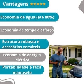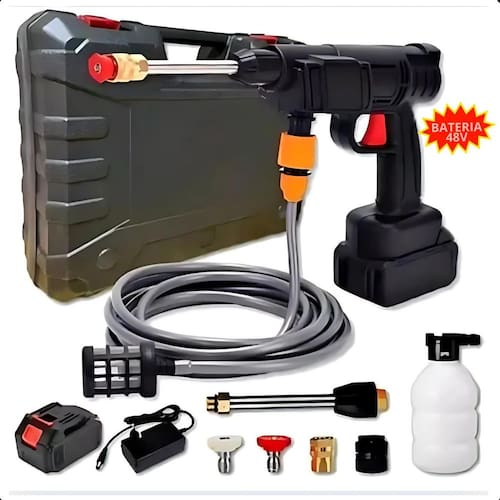 Lava jato alta pressão portátil - recarregável, para limpeza pesada de veículos Descrição do anúncio Lava jato alta pressão recarregável portátil sem fio para carros. Com essa lavadora de alta pressão, você poderá deixar brilhando qualquer material ou superfície, otimizando seu tempo e tornando o processo de limpeza fácil e eficaz. Com um design semelhante ao de uma furadeira, ela transforma água parada em um jato potente capaz de remover qualquer tipo de sujeira de carros, calçadas, paredes, bicicletas, cerâmicas e motos de forma rápida e eficiente. Totalmente recarregável, não necessita de proximidade com tomadas ou extensões, proporcionando liberdade total de movimento. Conteúdo da embalagem 1 maleta 1 Ferramenta de aplicação hidráulica de alta pressão 1 haste de extensão com bocal multifuncional 1 pote de espuma 300 ml 1 conexão rápida de entrada 1 caixa de armazenamento 1 bateria de lítio 48v 1 mangueira de água 1 filtro 1 carregador de bateria 2 bocais Características: Bateria de lítio: 3 vezes mais potente que uma mangueira convencional, proporcionando desempenho confiável. Design portátil e leve: ergonomia e aderência confortável para uma experiência de uso agradável em qualquer lugar. Sem fio: mobilidade total com recarga, sem a necessidade de tomadas ou extensões. Fácil de usar: punho ergonômico e controle simples, requer apenas água de qualquer fonte. Alta potência: potência de 240w a 400w, ideal para diversas superfícies. Multifuncional: desde a lavagem de carros até a rega de plantas, com diferentes níveis . Especificações: Fluxo de carga: 4 litros por minuto Peso líquido: 2-4 kg Tensão do carregador: 110v/220v 50hz/60hz Tensão da bateria: 48v Potência de ultra pressão: 240w / 400w Duração de uso da bateria: 1 hora dependendo do modelo Tempo de carga: 3 horas Pressão de pico: 6-25 bar / 32 bar Material: plástico abs + componentes elétricos Bocal de alta pressão: metal Tamanho da mangueira: 5 metros Dimensões: 24 x 24 x 14 cm Principais perguntas sobre o produto e respostas: 1 vem com maleta Sim. 2 tipo de alimentação Bateria de lítio 48v 3 qual é o tempo de carga e sua duração de uso Carregamento de 3 horas e uso de 1 hora recorrente. 4 a lavadora é portátil Sim, é portátil e leve, ideal para uso em qualquer lugar sem a necessidade de tomadas ou extensões. 5 quais são os níveis Desde a lavagem de carros até a rega de plantas, com pressão ajustável de 6-25 bar / 32 bar. 6 como faço a primeira utilização Recomendamos utilizar diretamente na torneira para remover o ar da máquina. Após este procedimento, a lavadora estará pronta para uso em baldes normalmente. 7 a lavadora é adequada para superfícies sensíveis Sim, com diferentes níveis , ela pode ser ajustada para superfícies sensíveis como plantas. 8 quais são as dimensões do produto As dimensões são 24 x 24 x 14 cm.