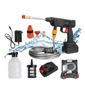 Lava jato alta pressão recarregável portátil sem fio carro Com essa lavadora de alta pressão, você poderá deixar brilhando qualquer material ou superfície. Otimizando seu tempo e tornando o processo de limpeza fácil e eficaz. O tamanho do motor se assemelha muito ao de uma furadeira, ele torna água parada em um jato bem potente que tira qualquer tipo de sujeira de carros, calçadas, paredes, bicicletas, cerâmicas e motos de uma forma rápida e eficaz. Como ele é um produto totalmente recarregável, não necessita ter proximidade com tomadas ou extensões , como nos modelos convencionais.