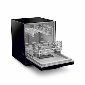 Lava-louças Brastemp BLF08AE com 8 serviços, 5 programas de lavagem, filtro de resíduos, desligamento automático, sistema antitransbordo e temperatura máxima de 60ºC.Programas de lavagem