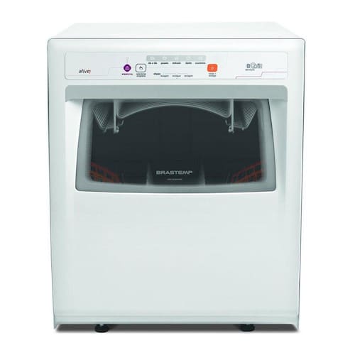 Lava Louça Brastemp Ative 8 Serviços Branco A lava-louças Brastemp 8 Serviços traz cinco diferentes ciclos pré-programados que lavam louças de até oito pessoas. O cesto superior tem regulagem de altura permitindo adequá-lo conforme o tamanho da louça. Também conta com visor transparente na porta e identificador de etapa. Cinco ciclos de lavagem Lava diferentes tipos de louça, com opções para louças diárias, pesadas, delicadas e ciclos rápidos e econômicos. Oito serviços Para atender até oito pessoas, lava 24 pratos, oito copos, oito xícaras, oito pires e 40 talheres. Função Acquaspray Permite acumular a louça por mais tempo e lavá-la em uma única vez. Isso porque ela libera jatos de água esporádicos que removem a sujeira e evitam que os resíduos ressequem enquanto a lavagem é prorrogada. Cestos ajustáveis Cesto superior com regulagem de altura e customizável de acordo com o perfil da louça. Identificador de etapas Permite acompanhar em qual fase a lavagem está.
