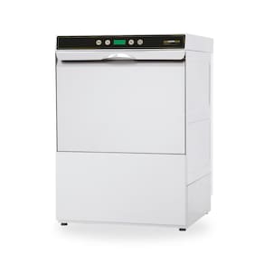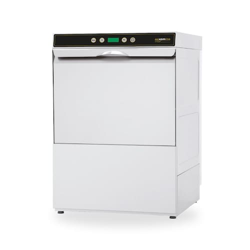 Lava-louças Ecomax 500 Fastline Hobart com 3 programas de lavagem, corpo em aço inoxidável AISI 304, porta com paredes duplas, tanque estampado sem emendas e interface intuitiva com mostrador digital.Programas de lavagem