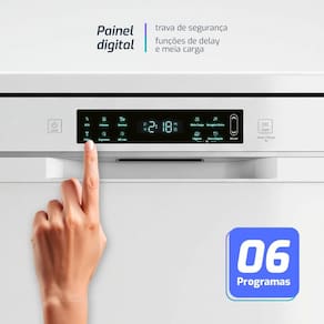 Características Gerais do produto Painel digital, 6 programetrosas de lavagemetros, Sistemetrosa anti-inundação, Bloqueio infantil, Aquecimetrosento residual.