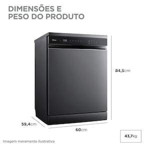 Lava-Louças Midea SmartHome Black Inox com 14 Serviços, 09 Programas de Lavagem e Função Open Dry - MDWEF1433GBS - 220V