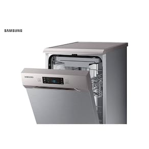 Lava-louças Samsung Inox com capacidade para 10 serviços, 6 programas de lavagem, função meia carga, painel digital, dispenser de detergente, sensor de nível de sujeira, função de adiar início e trava de segurança.Programas de lavagem