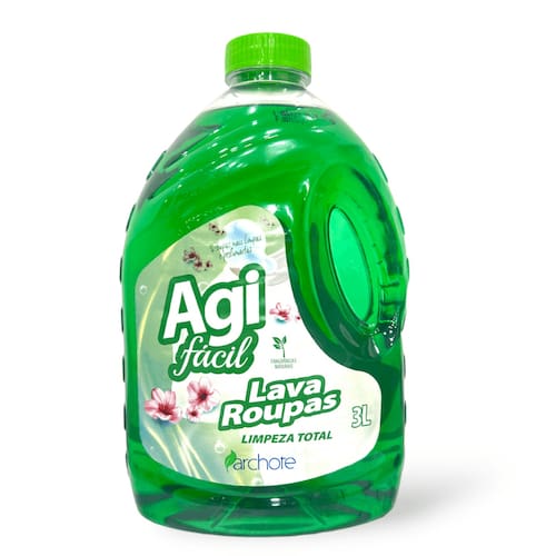 O Lava Roupas Líquido Agifácil Limpeza Total na versão de 3 litros combina a performance profissional da marca com a praticidade do uso doméstico. Sua fórmula avançada foi desenvolvida para penetrar profundamente nas fibras, removendo as sujeiras mais difíceis sem agredir os tecidos. Ideal para roupas brancas e coloridas, ele garante uma limpeza completa e deixa um perfume suave e duradouro. Por ser líquido, dissolve-se instantaneamente, não deixando manchas de resíduos nas roupas e mantendo sua máquina de lavar sempre limpa.