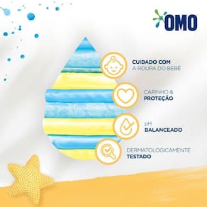 Sobre este Produto:O Sabão Líquido OMO Roupas Finas e Delicadas é imbatível no cuidado com as roupas* e cuida do meio ambienteLava roupas dermatologicamente testado e ideal para roupinhas do bebêO Sabão Líquido OMO Roupas Finas e Delicadas é hipoalergênico, com pH balanceado e avaliado por pediatraDetergente líquido imbatível no cuidado com a roupa do bebê, garantindo carinho e proteção aos tecidosO Sabão Líquido OMO para bebê foi formulado para suas roupas delicadas durarem muitoLava roupas poderoso! Com apenas meio copo** você lava uma máquina cheia
